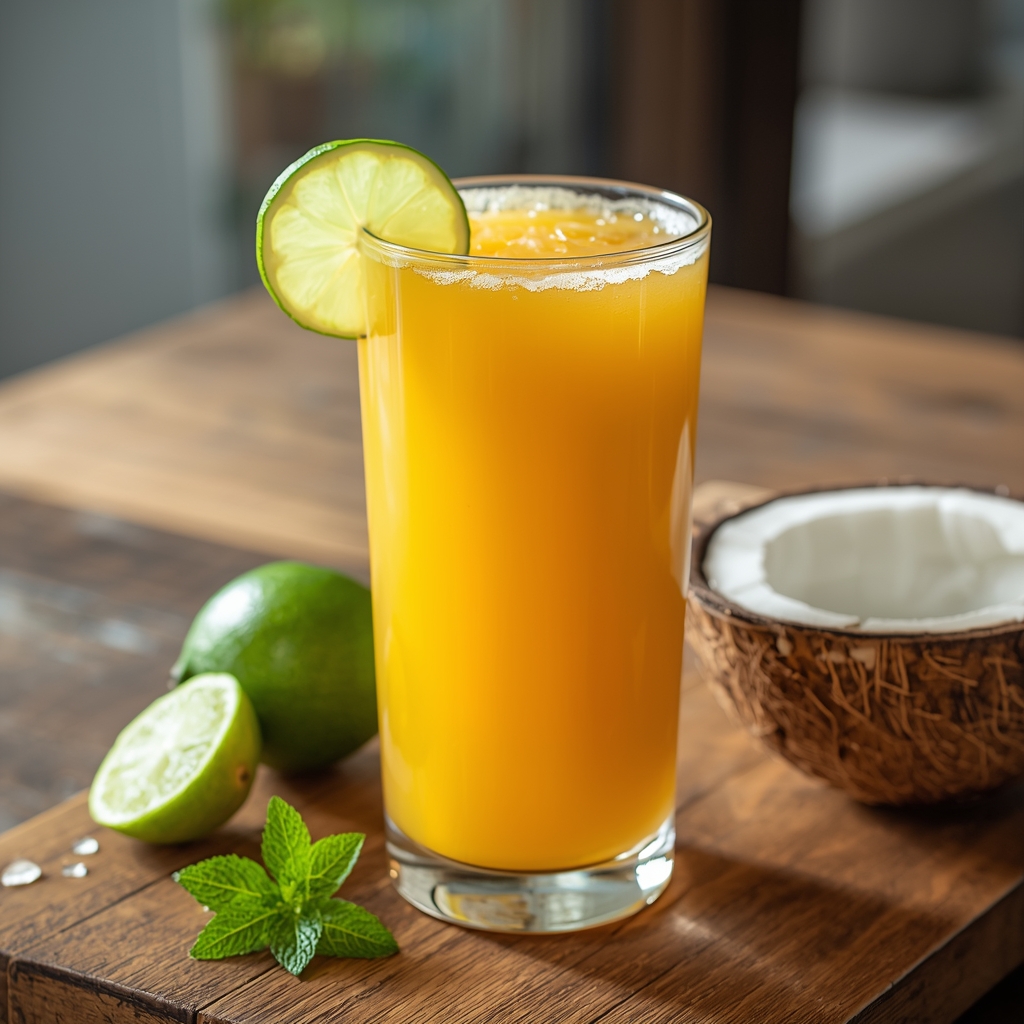 - Mit Kokoswasser und Limettensaft pürieren