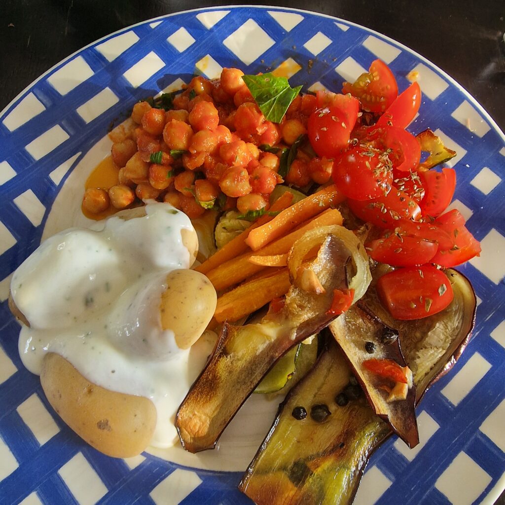 - Mittag: Ofengemüse + Quinoa + etwas Olivenöl
